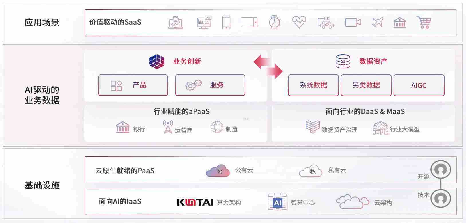 数字时代,,,围绕企业数字化转型的关键要素,,,,Z6尊龙数码开创性的提出数云融合战略和技术体系框架,,,着力在云原生、、、、数字原生、、、AI原生和信创产业上架构产品和服务能力,,,为处在不同数字化转型阶段的快消零售、、、、汽车、、金融、、、医疗、、、政企、、、、教育、、、运营商等行业客户提供泛在的敏捷IT能力和融合的数据驱动能力,,,构建跨界融合创新的数字业务场景和新业务模式,,助力企业级客户建立面向未来的核心能力和竞争优势,,全面推动社会的数字化、、、、智能化转型升级。。。