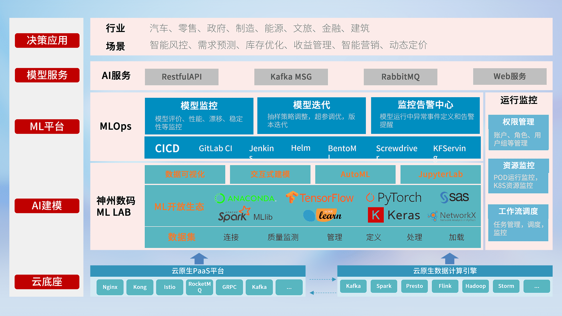 数据+模型双引擎驱动,,面向智能服务场景,,,,快速灵活利用AI技术,,支持业务决策,,,,助力企业智能化转型破局。。。。